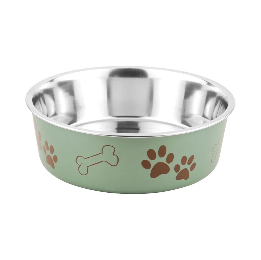 Lækker og smart vand/madskål. I metal. Flotte farver & med smart potemønster. Gummiring i bunden, for at sikre skålen ikke skrider rundt.