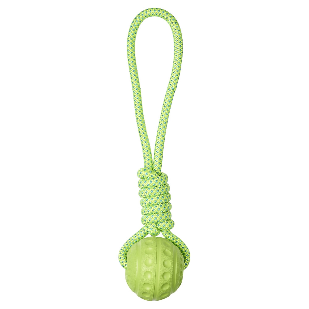 Limefarvet bold med reb. Bolden kan flyde på vandet.