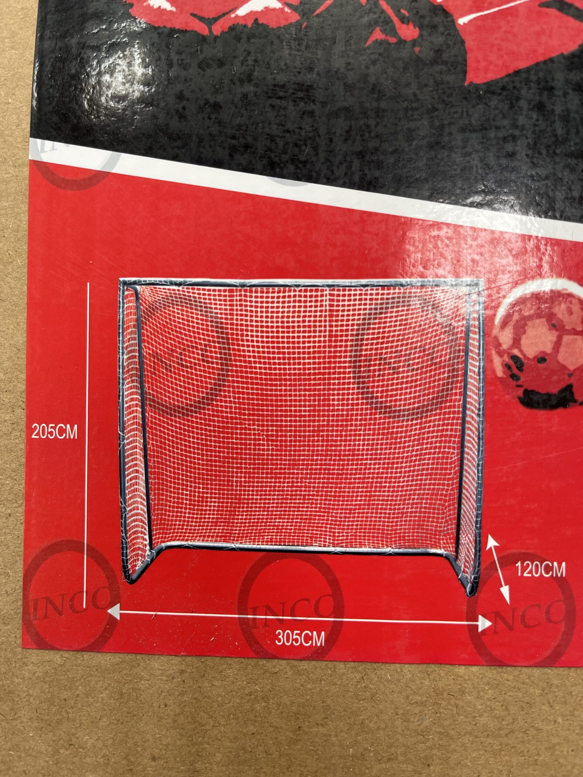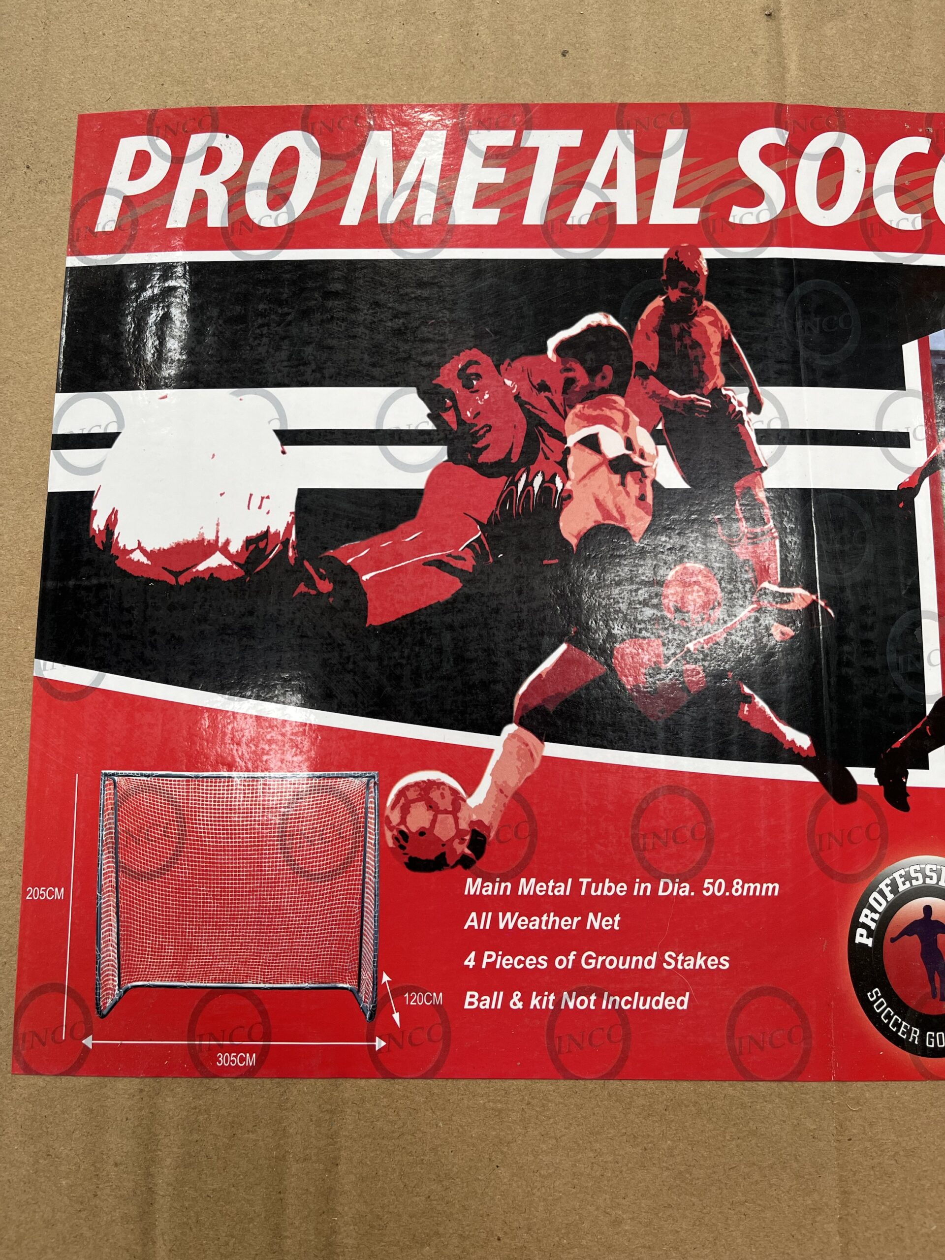 Robust fodboldmål i metal. Diameter på rør 50,8 mm. Inkl net og 4 “pløkker” for stabilitet.