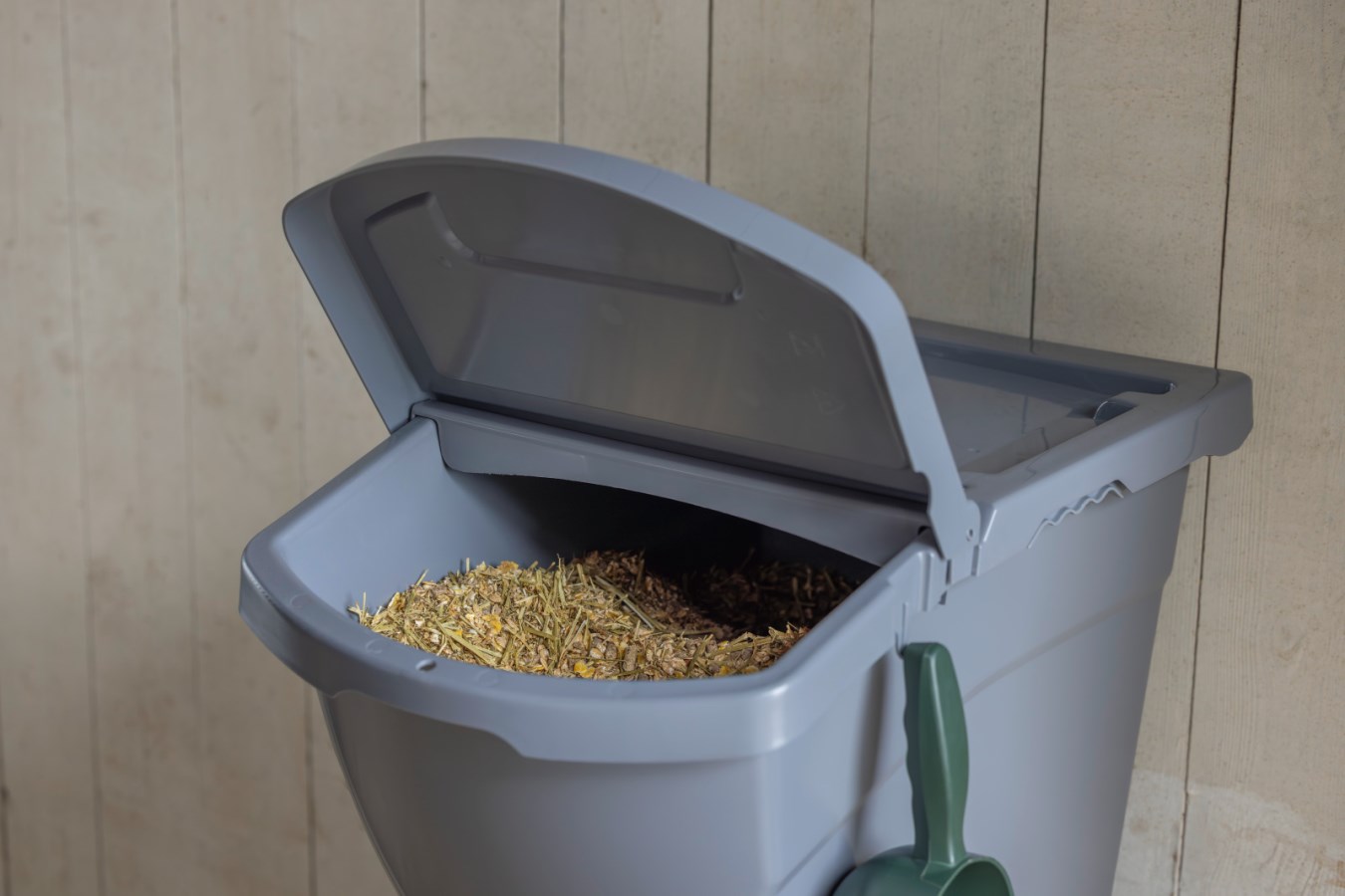 - Stabelbar kasse til opbevaring af dyrefoder osv.