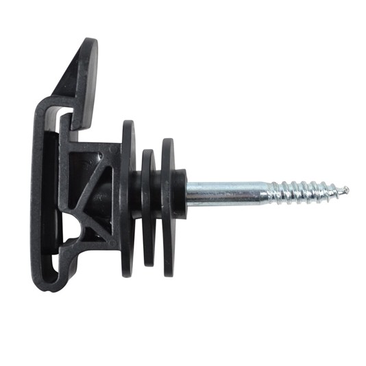 Isolator der passer til elbånd op til 40 mm. Elbåndet placeres i holderen, og isolatoren låses, ved at klikke clipsen på plads. Kan også bruges til elreb. Så placeres rebet i “hullet” i låsen